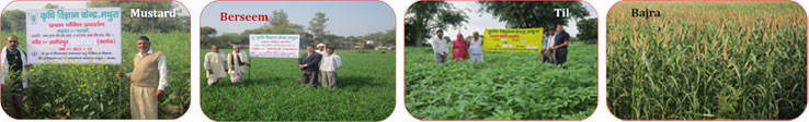The KVK, Mathura takes up the activities of skill training of farmers by providing work experience On Farm Testing to identify location specificity of technologies in various farmers systems, in-service training of extension personnels to updates their knowledge in frontier areas of agriculture technologies and organizing front line demonstrations to establish production potentials on farmers field and provide feedback.